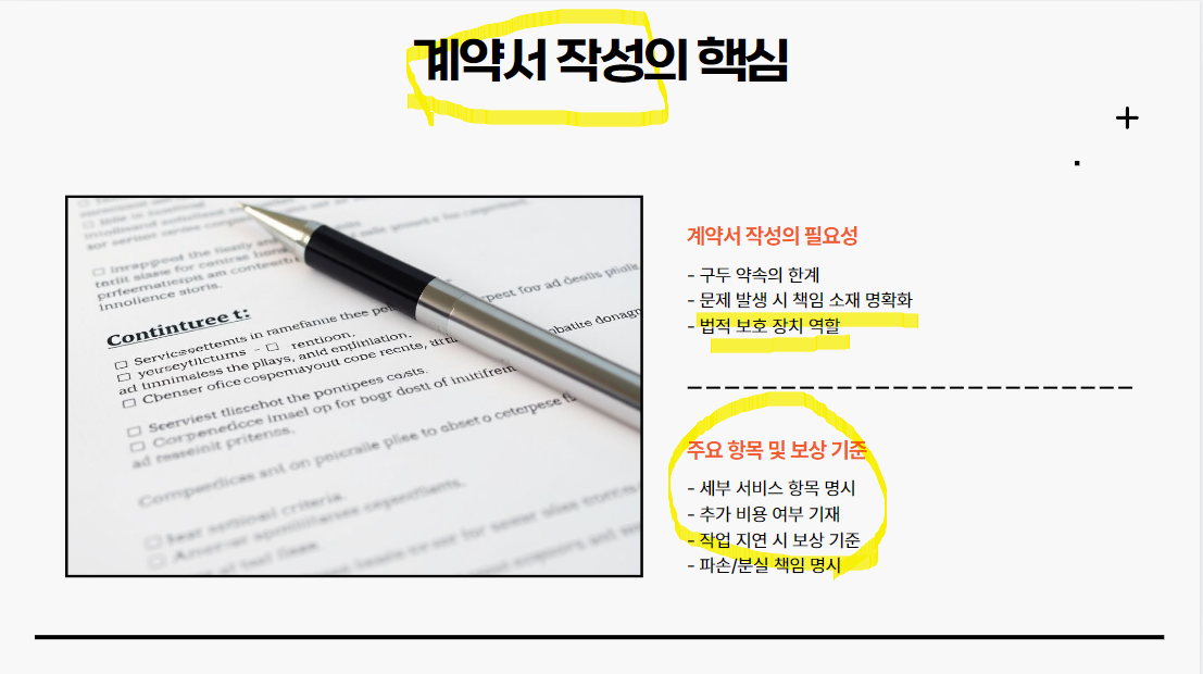 - 계약서 작성의 이점: 문제가 생겼을 때 근거 자료로 활용 가능