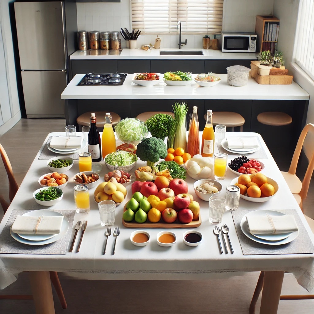 - 술은 자리가 부족하다면 작은 용기에 담아 따로 준비해두고, 꼭 필요한 음식을 중심으로 배치하는 것이 좋습니다.