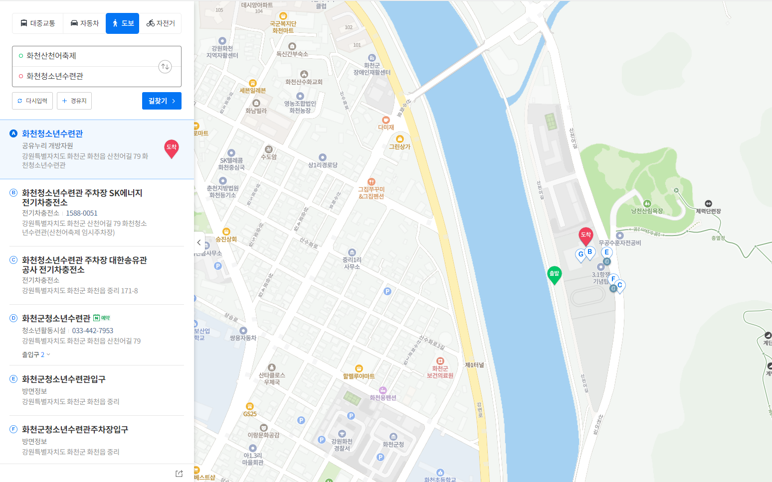 - 제1임시주차장: 화천청소년수련관(화천군 화천읍 중리 233-7)