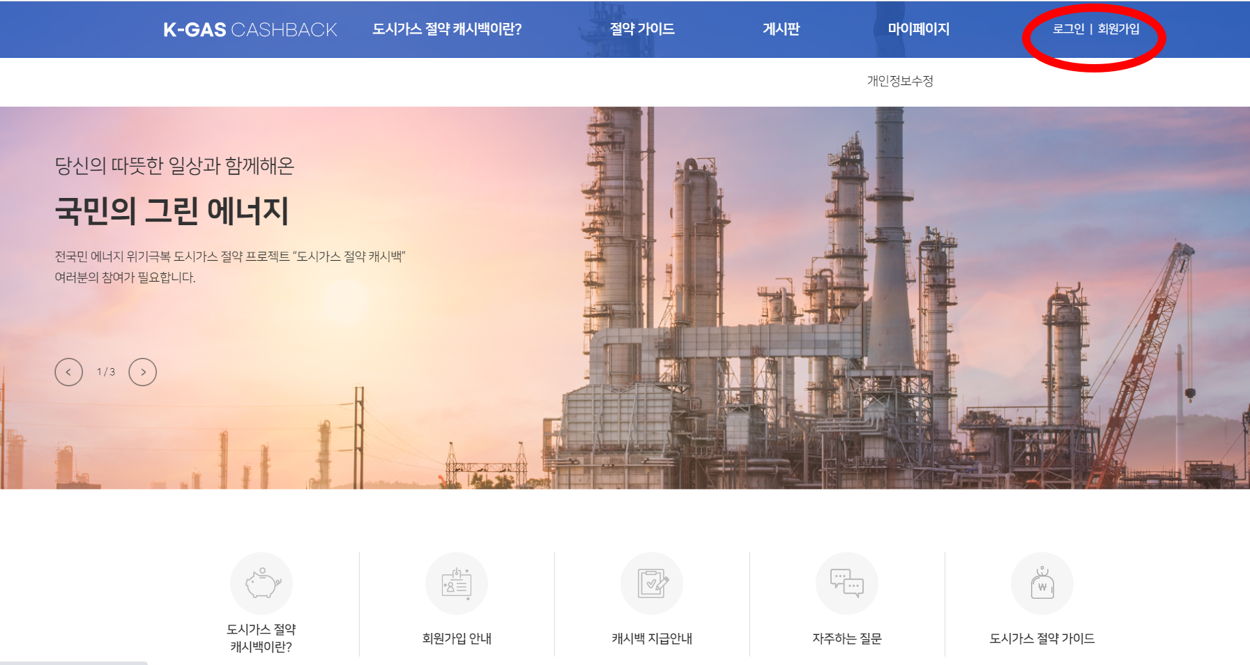 • 도시가스 캐시백 전용 포털에 접속합니다.